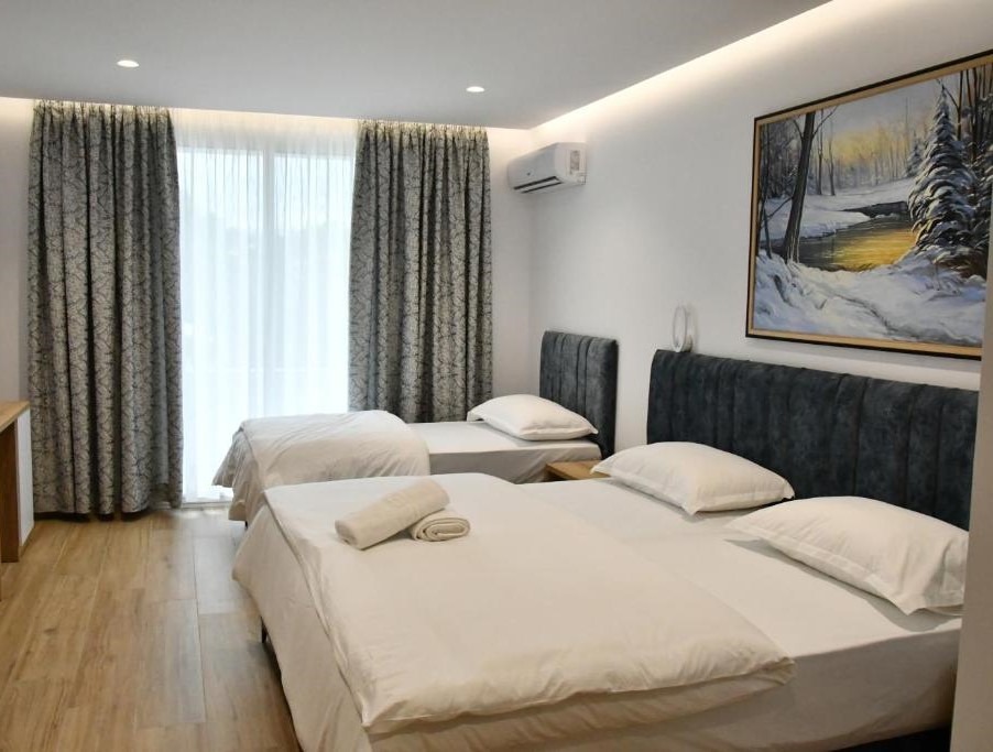 Featuring free toiletries and bathrobes, this quadruple room includes a private bathroom with a shower and a hairdryer. The quadruple room features air conditioning, a carpeted floor, heating, as well as a flat-screen TV.